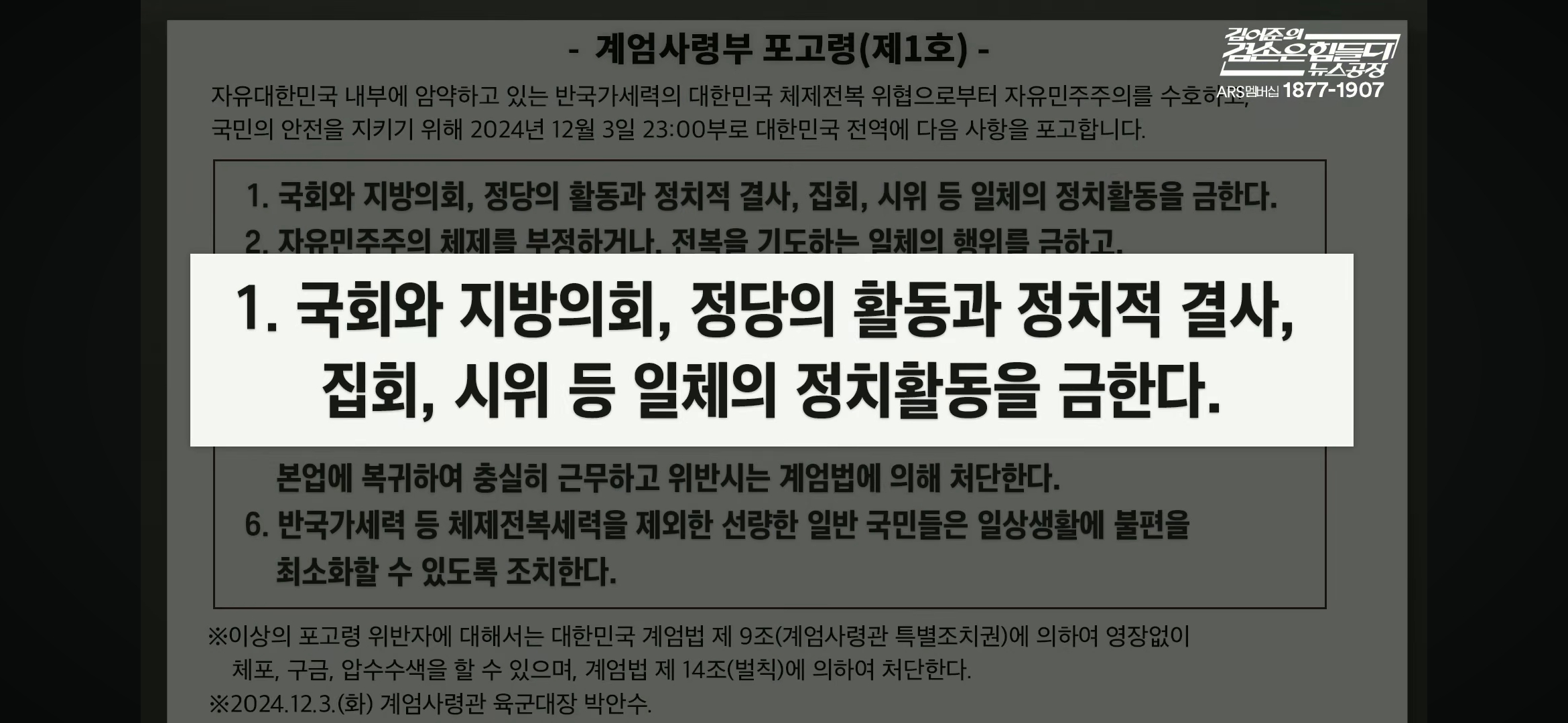 국회 정치를 금지한 포고령 첫 줄만 보면 바로 아는 거 아닙니까?
