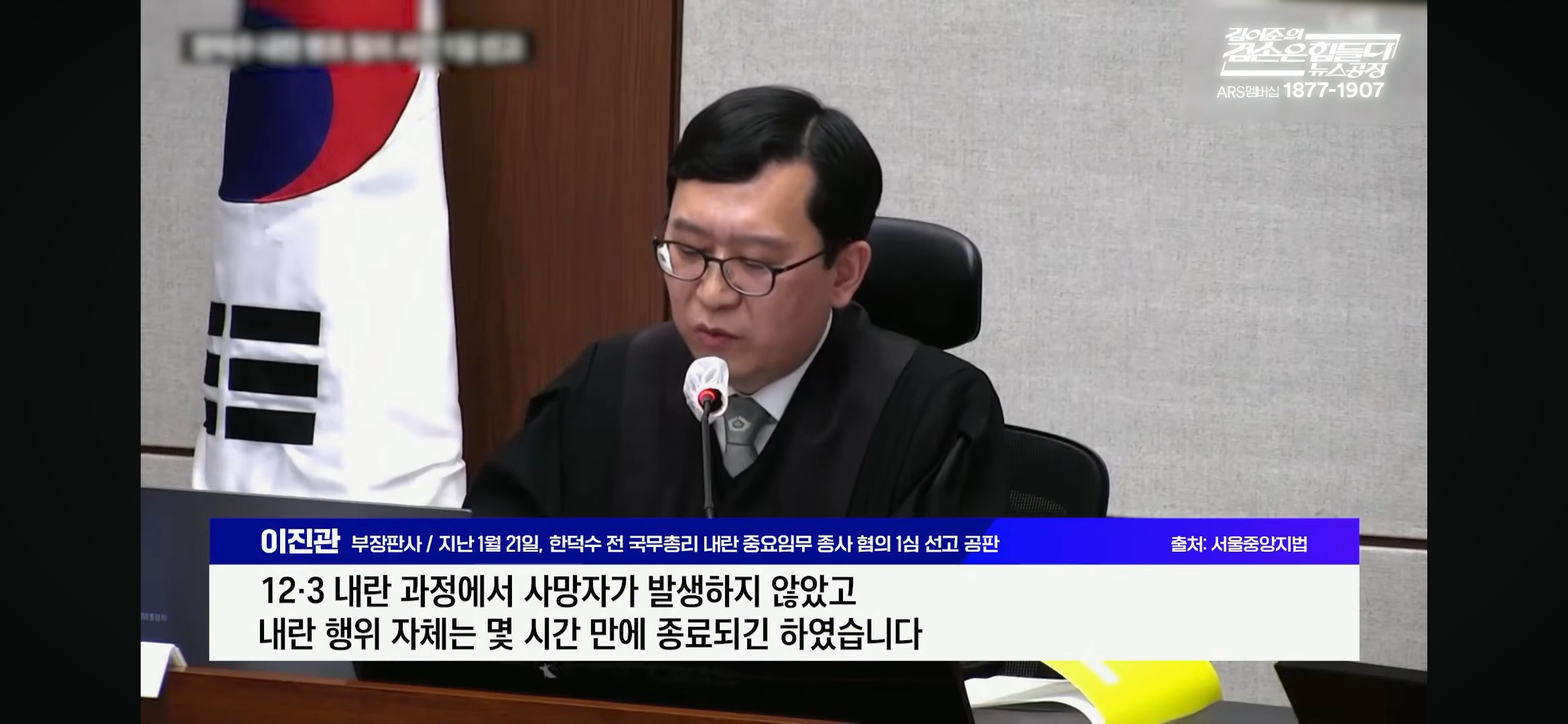 서울중앙지법 형사합의33부(재판장 이진관)가 한덕수 전 국무총리의 내란 중요임무 종사 등 혐의에 대해 1심에서 징역 23년의 중형을 선고한 가운데, 이진관 부장판사가 “12·3 비상계엄에 맨몸