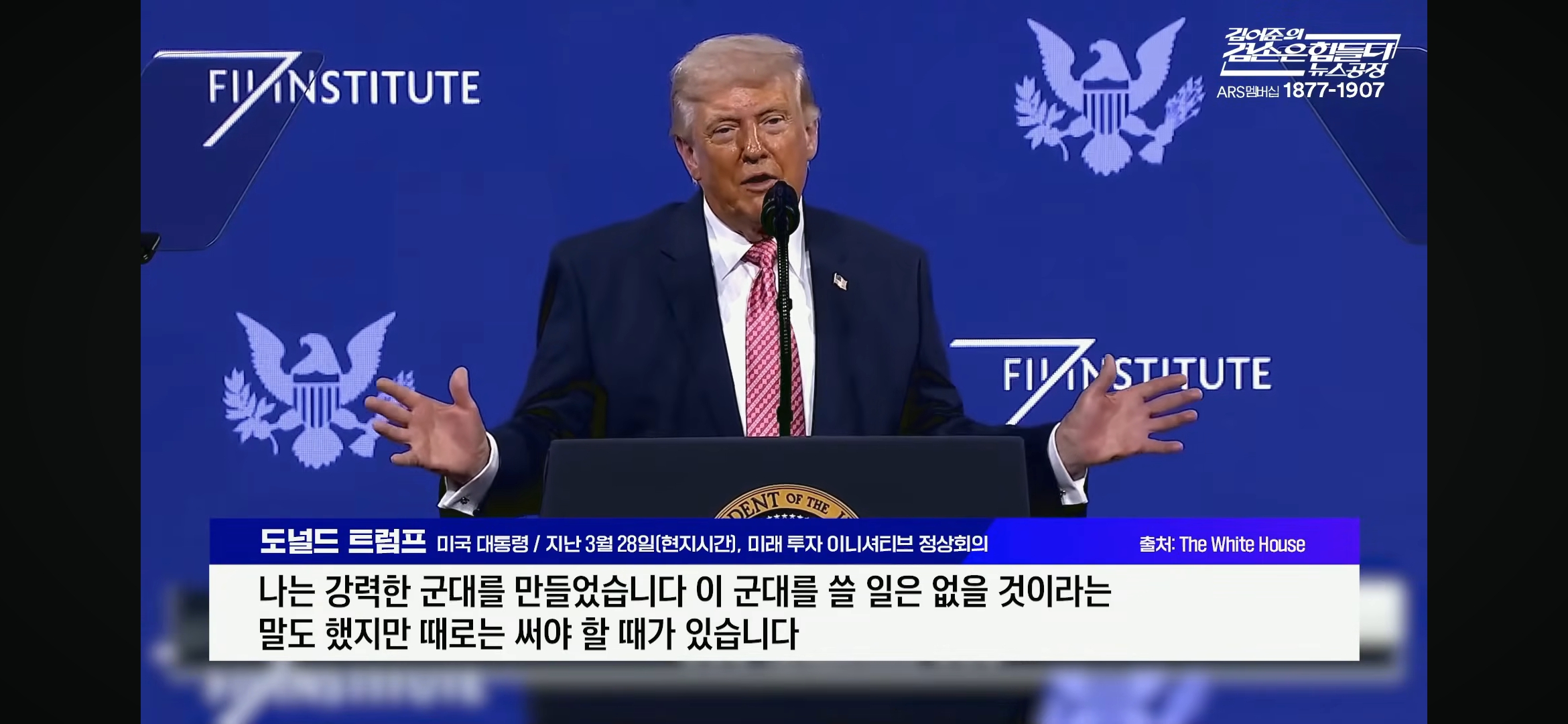 로이터통신 등 외신에 따르면, 트럼프 대통령은 현지시간 27일 플로리다주 마이애미에서 열린 투자 포럼 연설에서 베네수엘라와 이란에 대한 미군 작전 성과를 거론한 뒤 "나는 위대한 군대를